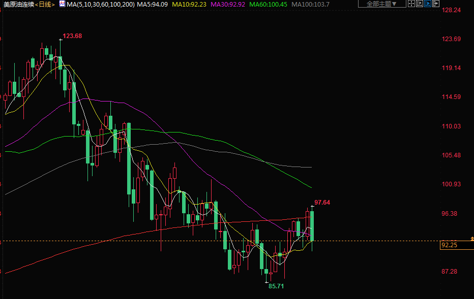 商品收盘情况:布伦特10月原油期货在触及每桶97.55美元的盘中低点后,收跌5.5%,报每桶99.31美元。10月合约于周三到期,交投更活跃的11月布伦特原油期货报每桶97.84美元,下跌4.9%。美国原油期货收跌5.54%,报每桶91.64美元;美国期金下跌0.8%,结算价报1736.3美元。