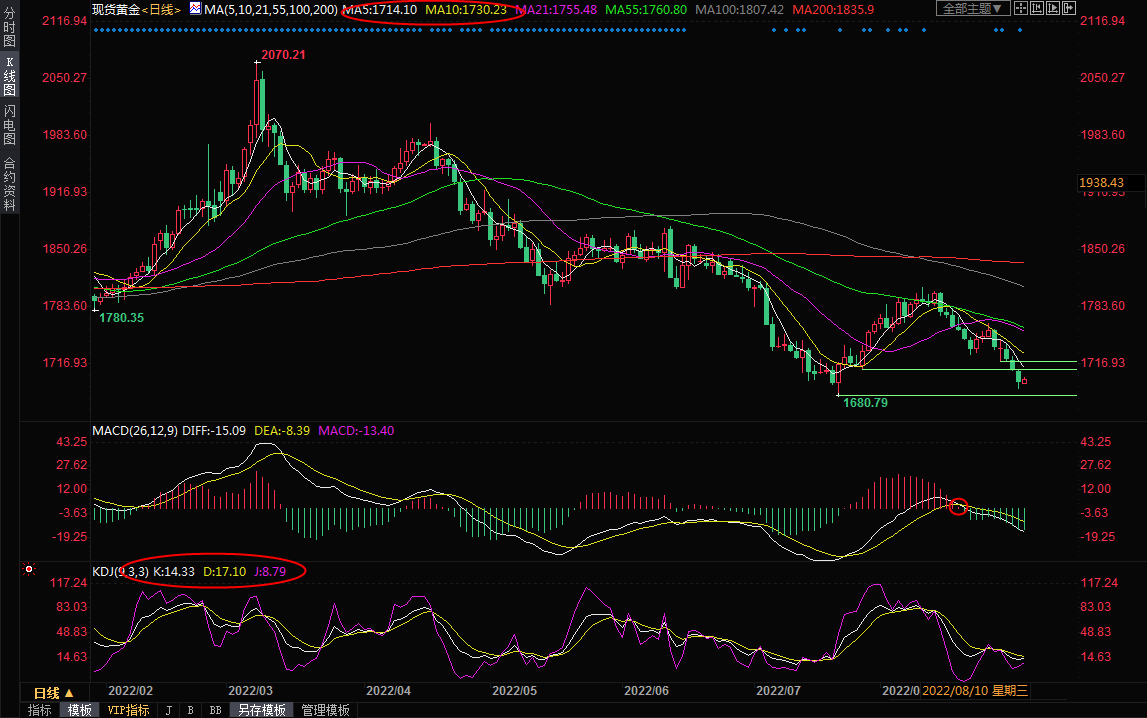 鉴于KDJ发出短线超卖信号,1676.91附近支撑也比较强,短线快速下破该支撑的难度较大,即使下破,也存在探底回升的机会;上方留意7月27日低点1711.38附近阻力,若能收复该位置,则削弱短线看空信号;5日均线阻力目前在1714.03附近,周一低点阻力在在1720关口附近,10日均线阻力在1730.19附近,若意外收复该位置,则增加短线看涨信号。