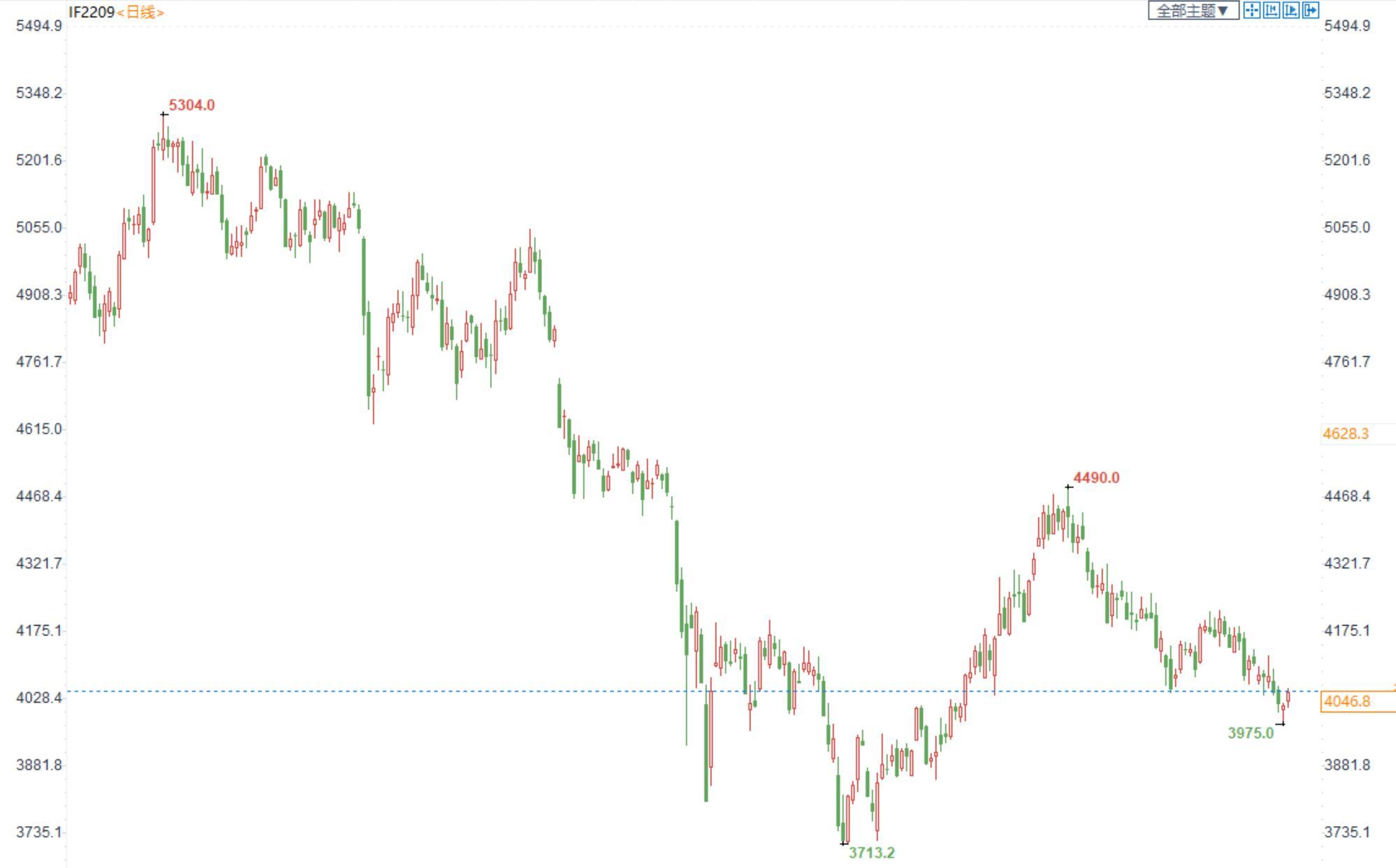 【今日行情】四大期指全线收涨。IH2209收盘价为2724.4,收涨1.08%;IF2209收盘价为4046.8,收涨1.03%;IC2209收盘价为6272.6,收涨1.99%;IM2209收盘价为6879.8,收涨2.10%。今日市场全面反弹,四大期指高开高走,上证综指时隔3个交易日再度站上3200点。风格方面,早盘宁德时代大跌未拖累“新半军”的强势,以IC和IM为代表的中小盘仍强于以IH为代表的大盘,一定程度上表明在充裕的流动性支撑下,短期市场风格难以转向。板块方面,有色金属、新能源以及国防军工板块涨幅居前,银行、医药以及食品饮料等蓝筹板块仍旧偏弱。两市超3600只个股收涨,总成交额增近千亿至8691.70亿元。