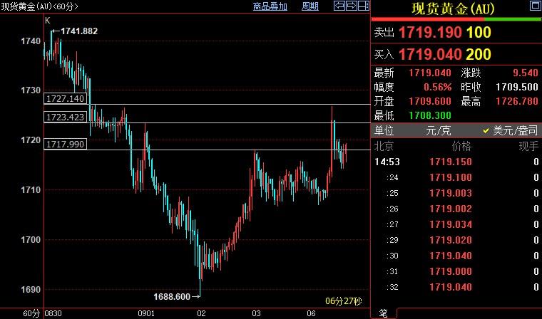 周二(9月6日),国际金价上涨,受美元回落和经济放缓担忧导致的避险买盘提振,短线料再度上冲1723-1727美元区间。但金价涨幅受限于全球央行大幅加息前景。
