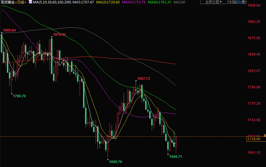 High Ridge Futures金属交易主管David Meger将黄金的走势归因于“一些避险需求和低吸买盘的结合,而来自美元和激进的美联储的不利因素仍然存在。黄金最近像是一种风险资产,而非避险资产。问题是,当我们开始看到经济因这些加息政策而放缓时,何时才能看到黄金发挥更多的避险作用。”