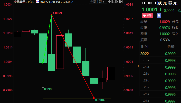 北京时间周四(9月8日)20:15,欧洲央行公布新政,如期加息75个基点,单次加息幅度创1999年以来新高。截至发稿,欧元兑美元下跌19点至0.9984,累计波动45点。