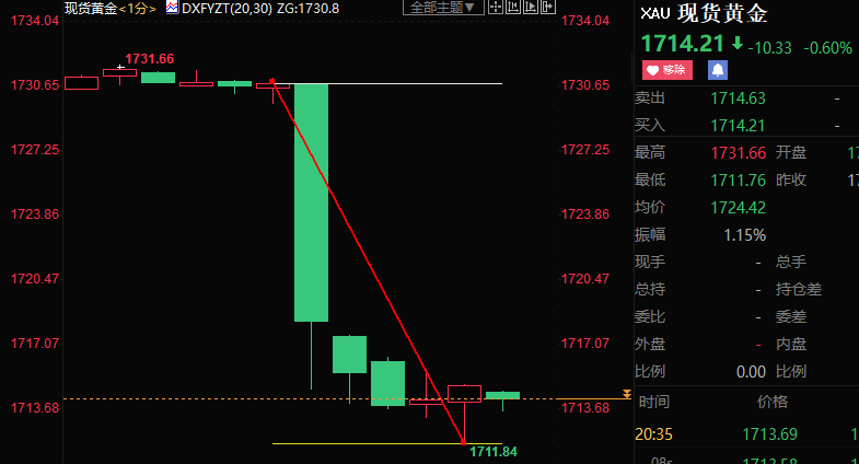 北京时间周二(9月13日)20:30,美国公布8月通胀数据,总体与核心通胀均高于预期,美联储本月料连续第三次加息75个基点。截至发稿,现货黄金跳水近20美元至1711.84美元/盎司。