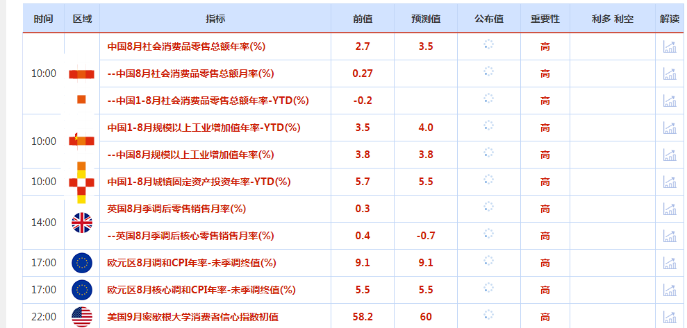 数据显示,美国8月零售销售增长0.3%,但随着美联储加息,商品需求正在降温,接受路透访查的经济学家此前预测销售将保持不变;美联储将继续激进收紧政策的观点一直在支撑美元。