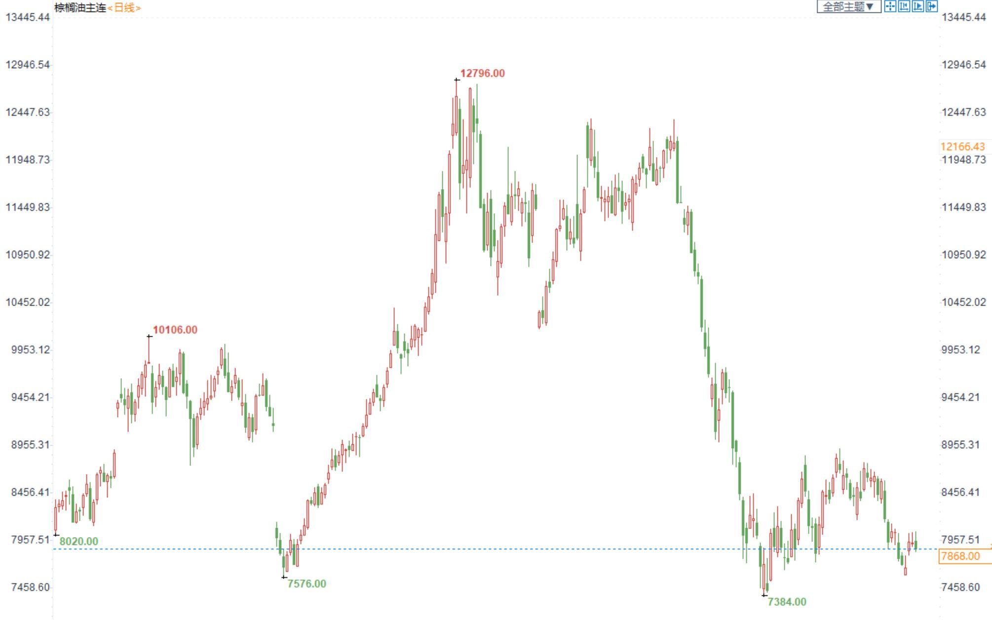 棕榈油2301合约日内跌0.13%,收盘7944元/吨;广州市场棕榈油8270元/吨。