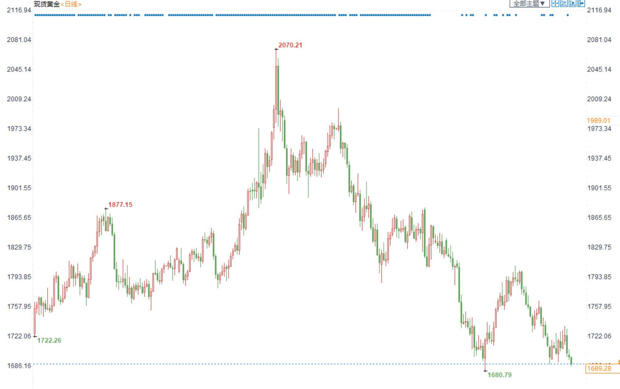 【基本面】美国8月的CPI同比数据高于市场预期,短线对市场产生较大情绪上的利空,美指和美债收益率走强,对金银产生较强压制。之前我们认为,8月CPI同比是低于前值的,也就是CPI见顶回落的预期是没有改变的,所以尽管市场开始出现预期9月加息100个基点的声音,但不会对于下周美联储加息75个基点的预期产生太大改变,估计国际金价维持筑底震荡的可能性偏大。但是,从昨天和今天的市场来看,尽管加息75个基点的预期是大概率事件,但多头仍旧偏弱,伦敦金当前已有效跌破1700点,接近前低1680美元。而本周进入美联储议息会议前的静默期,无联储官员的公开讲话,市场很大程度上将对美指和美债收益率的敏感性增强,可以重点关注这两大指标。