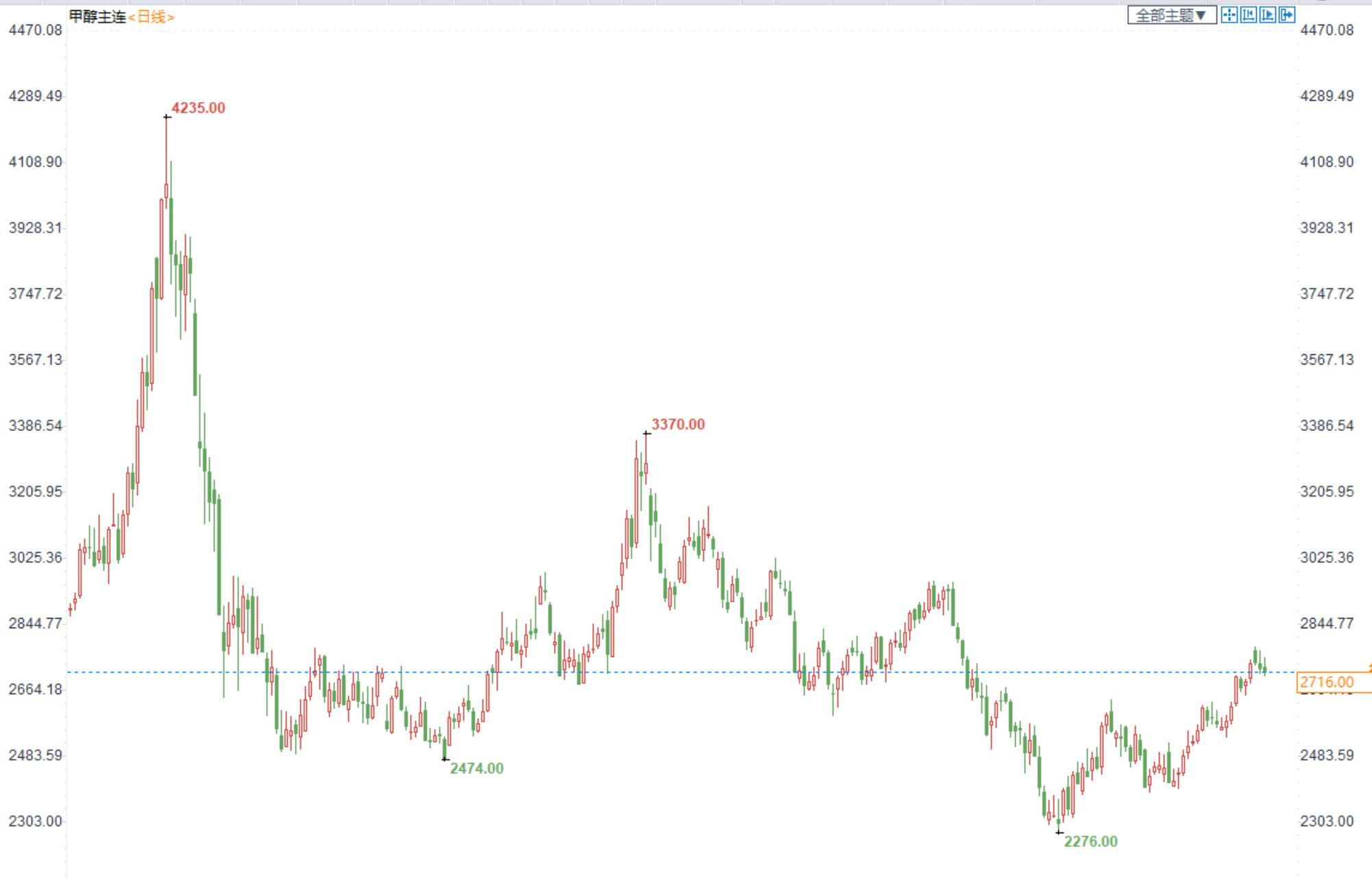 期货市场,甲醇2301合约小幅收跌,收盘价2716。江苏现货报价2725-2730,市场成交一般。