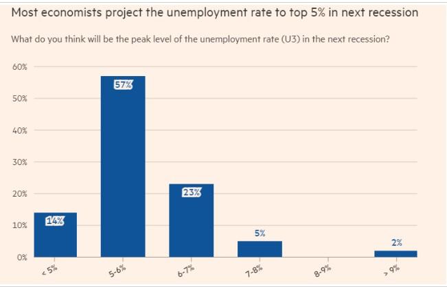 多数经济学家预计下一轮经济衰退中美国失业率将超过5%