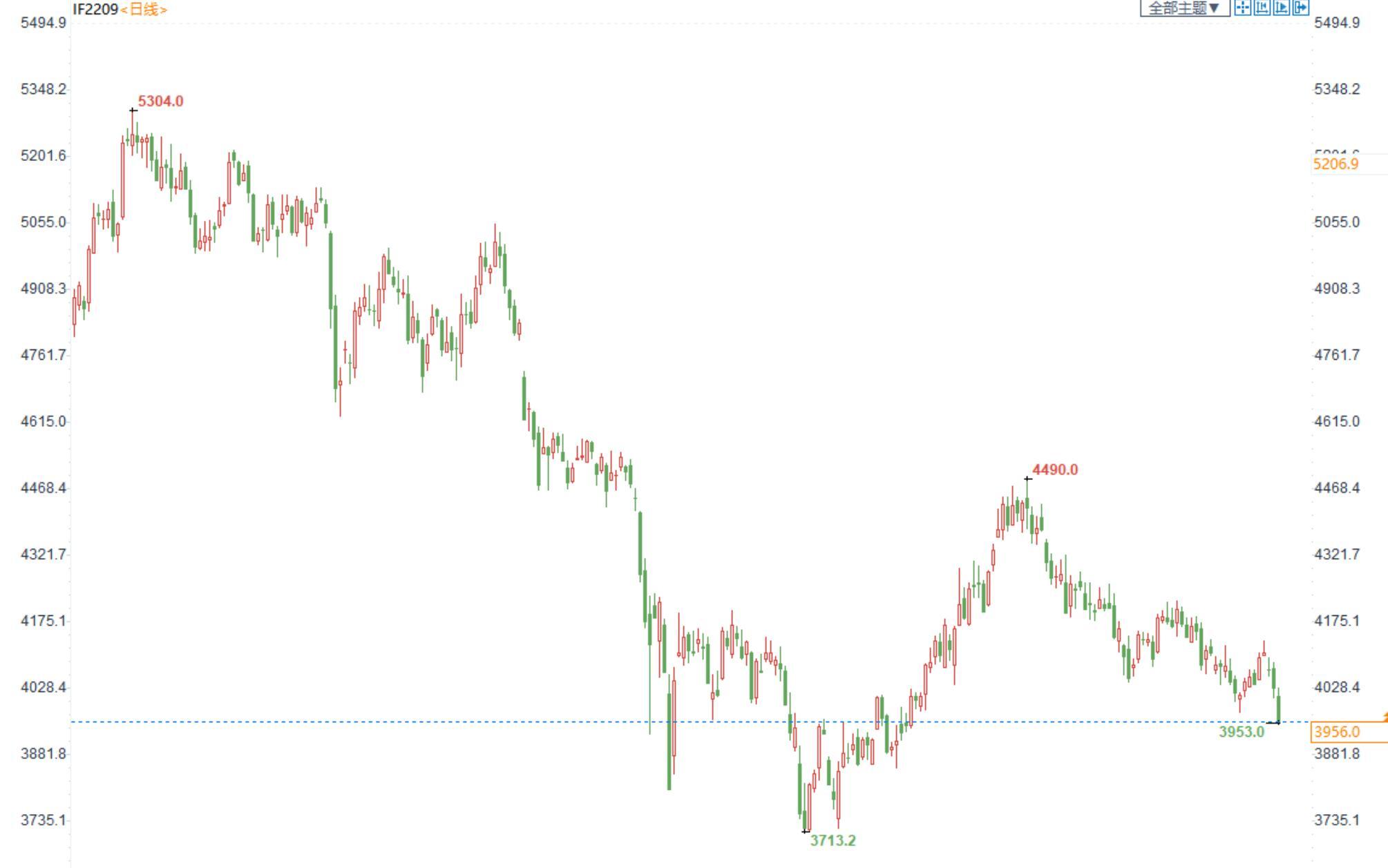 【今日行情】四大期指涨跌互现。IH2210收盘价为2651.4,收跌0.85%;IF2210收盘价为3896.6,收跌0.78%;IC2210收盘价为5949.2,收涨0.58%;IM2210收盘价为6412.6,收涨0.63%。今日市场分化较为明显,IH和IF低开震荡为主,上证50指数一度创新低至2641.72,IC和IM低开高走,小幅收涨。板块方面,房地产以及电力板块涨幅居前。市场再度缩量,总成交额降至6382.08亿元,再创两年来新低,连续第三个交易日处于6000亿元上方。