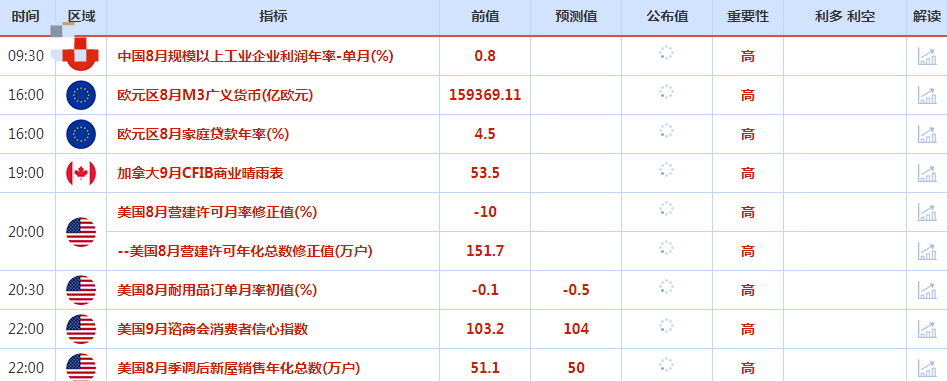 18:15芝加哥联储主席埃文斯发表讲话、21:15欧洲央行副行长金多斯发表讲话、圣路易斯联储主席布拉德就美国经济与货币政策发表讲话。