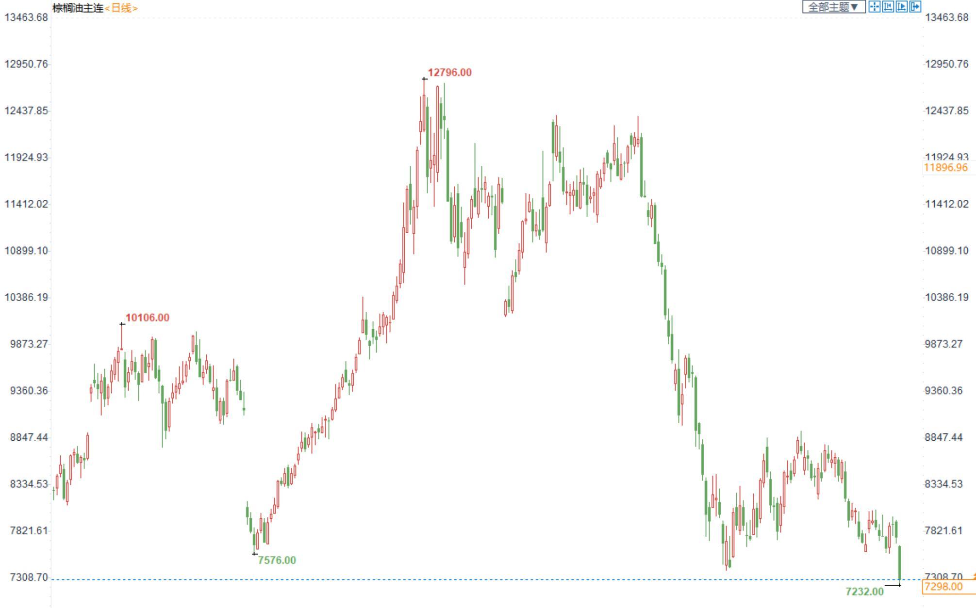 棕榈油2301合约日内跌1.77%,收盘7298元/吨;广州市场棕榈油7730/吨。