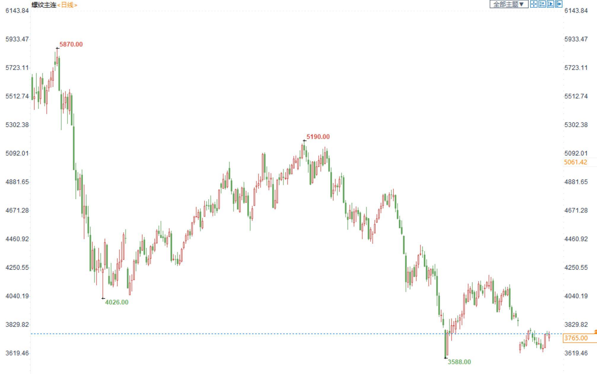 价格:螺纹钢2301合约自白天开盘迅速拉涨后震荡运行,收盘于3765元/吨,收跌0.08%。上海中天现货价为3980元/吨。