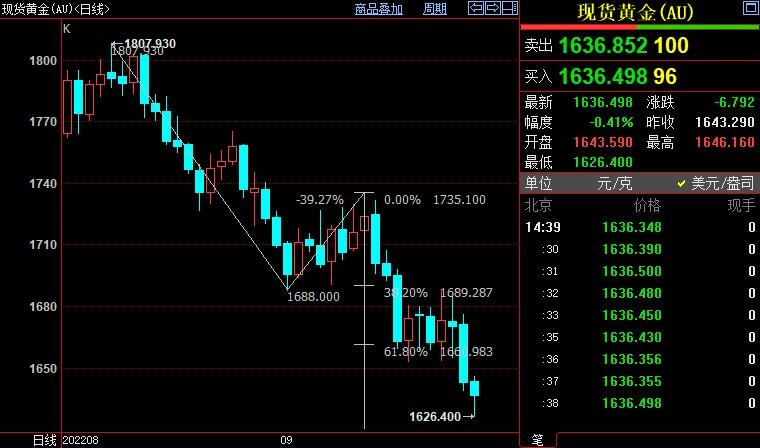 周一(9月26日),国际金价创2020年4月上旬以来新低至1626.60美元/盎司,因美元走强以及全球主要央行采取激进鹰派立场以抑制通胀。金价后市下看1615美元。