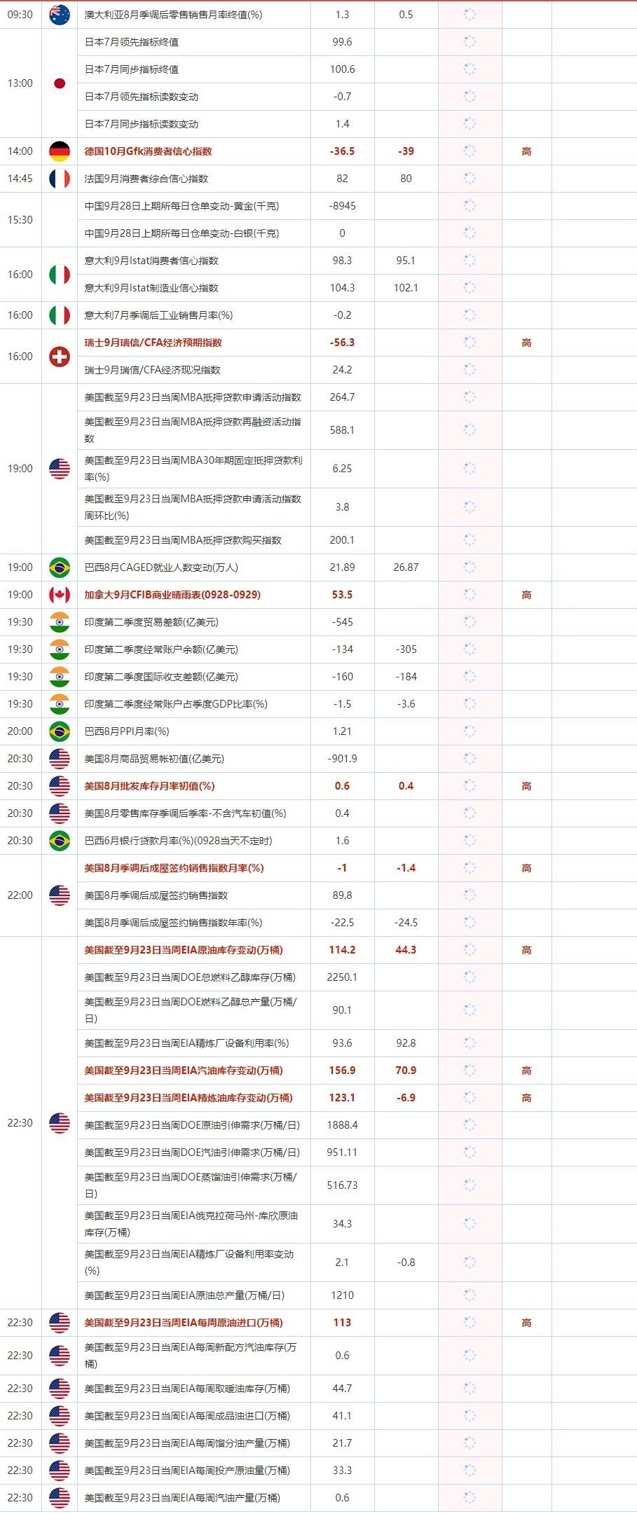 后续及时更新的财历数据请关注:【汇通网9月28日财经日历】