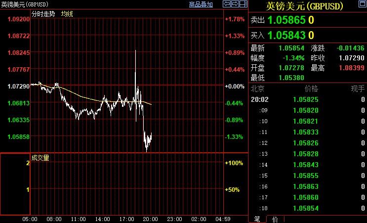 英镑兑美元盘中短线暴涨逾160点至1.08上方,美元指数高位回落,限制了金价下行步伐。但英镑很快回吐短线涨势并进一步走低,英国央行宣布临时长期债券购买决定,此举显示出目前面临的挑战。