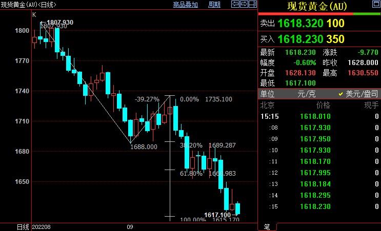 周三(9月28日),现货黄金创2020年4月上旬以来新低至1614.67美元/盎司,因美联储保持激进加息前景继续利好美元,美元指数续创2002年5月中旬以来新高至114.974。