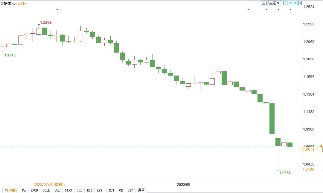 市场受到这些新措施的强烈影响,英国债券下跌,英镑周一暴跌至历史低点1.0356,之后虽然收窄跌幅,但仍维持低迷。