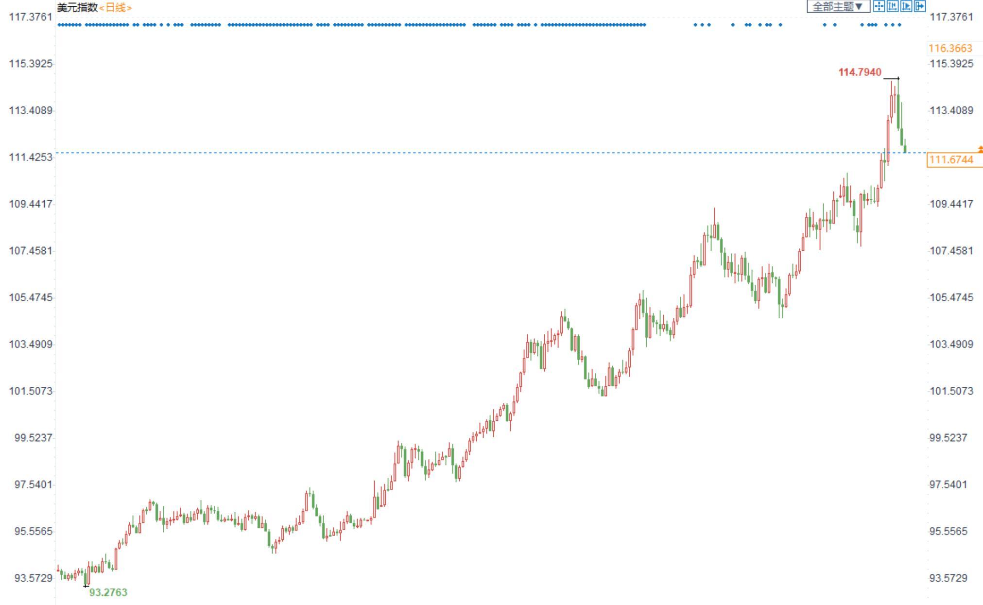 当前美联储11月2日再加息75个基点几乎已经完全被市场消化,12月14日再加息50个基点也被消化。美元短期内出现一些调整。