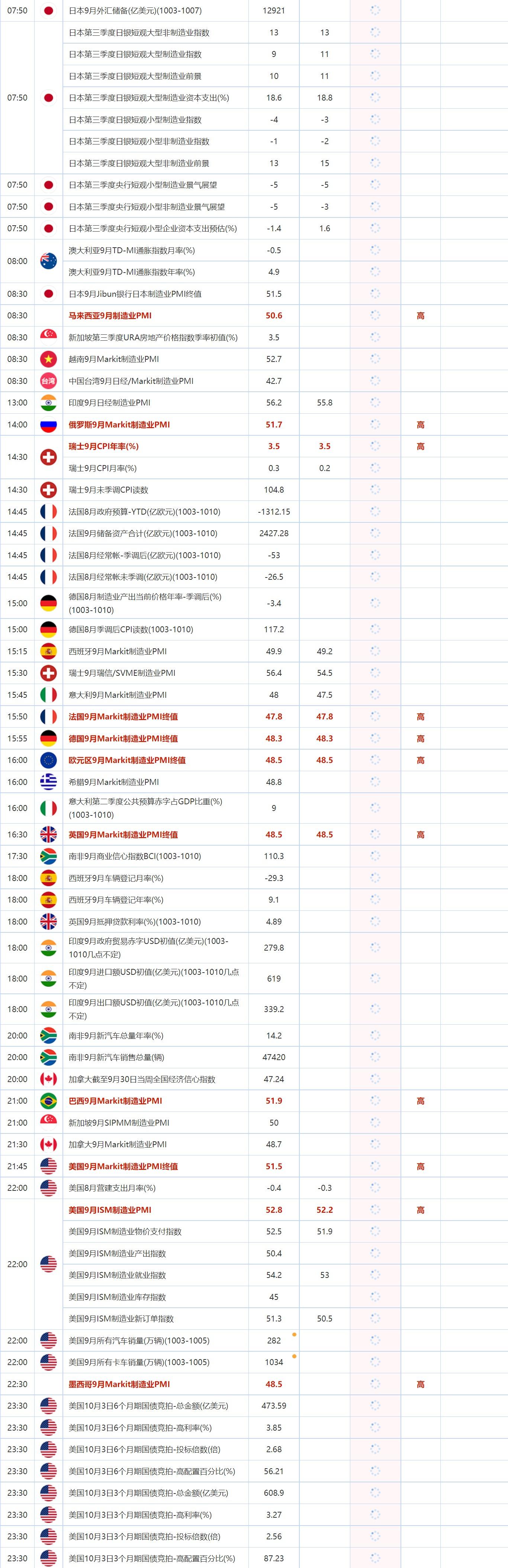 后续及时更新的财历数据请关注:【汇通网10月3日财经日历】