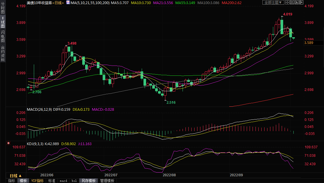 美国10年期国债收益率周一下跌逾4%,此前英国首相特拉斯被迫放弃减税计划,而美国经济数据显示制造业放缓。