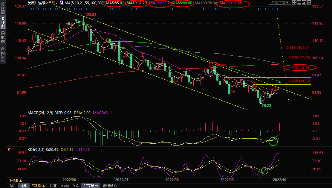 鉴于油价短线反弹幅度较大,而且油价在55日均线88.60和9月5日高点90.36附近阻力均存在较强的阻力,仍需提防短线回调风险;初步支撑在9月26日高点86.65附近,5日均线84.97附近,此前下跌通道的上轨支撑也在该位置附近,若回落至该位置下方,则削弱短线看涨信号;10日均线支撑在82.19附近。