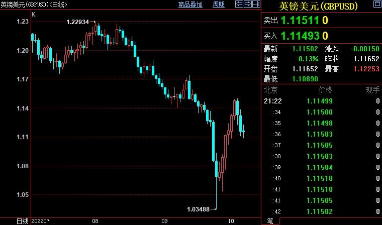英镑兑美元上浮0.04%至1.1159,盘中最高触及1.1494。投资者评估了英国首相特拉斯周三在保守党大会上的讲话。特拉斯敦促保守党团结起来,帮助经济和国家转型。她的评论是在政府周一宣布减税转折后发表的。