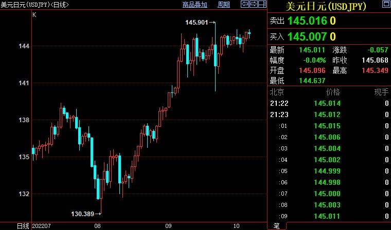 美元兑日元上涨0.15%至145.024,盘中低见143.523。越来越多的人接受美联储将坚持更激进的加息周期以抑制通胀,这继续成为美元和美元/日元的有利因素。此外美国-日本利差扩大正在打压日元并支撑美元兑日元上扬。