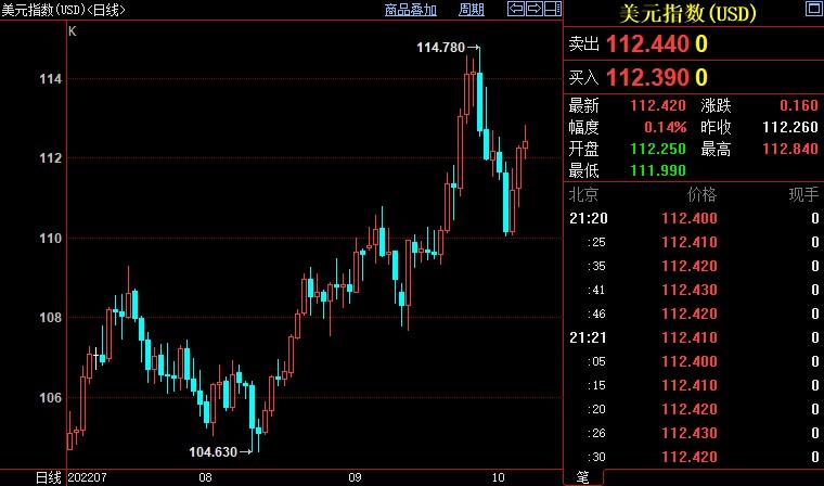 美元指数上涨0.35%至112.60。美国9月非农就业人口增加26.30万,创2021年4月以来最小增幅,但增幅略高于预期的25万,前值增幅从30.8万下修至27.5万;美国9月失业率重回2020年1月以来低点3.50%,低于预期值和前值0.2个百分点。