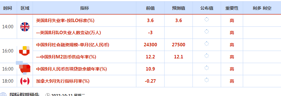 北京时间周一(10月11日)亚市早盘,美元指数交投于113.16附近,美元周一连续第四个交易日上涨,投资者翘首以待本周晚些时候美国公布的通胀数据,该数据可能显示世界最大经济体的价格压力仍居高不下,使美联储的激进货币政策势将持续到明年;金价连续第四个交易日下跌,触及一周低点;油价收盘下跌超2%,尽管盘中油价一度触及一个月以来新高至93.61美元/桶,结束了连续五个交易日上涨的趋势,投资者担心经济阴云可能预示着全球经济衰退并打击燃料需求。