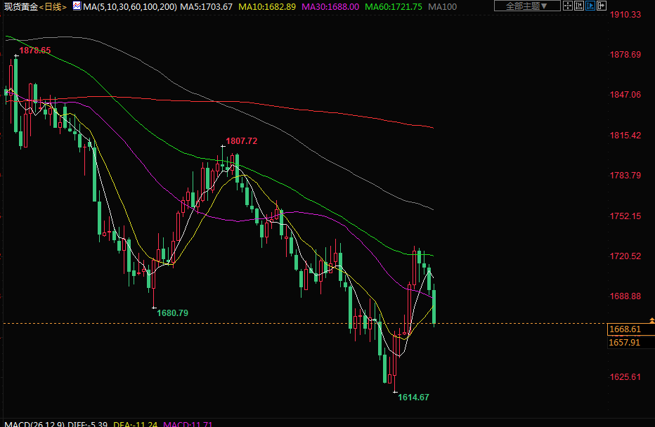 独立分析师Ross Norman表示,“我们再次回到1680美元的水平,短期内黄金仍将面临一些下行压力,”投资者关注将于本周稍晚出炉的美国关键通胀数据。