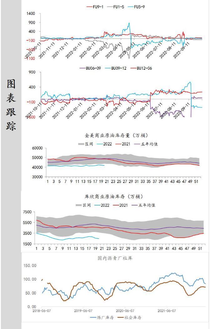 供应端:据美国能源信息署最新数据显示,截止2022年9月30日当周,包括战略储备在内的美国原油库存总量8.45592亿桶,比前一周下降755万桶;美国商业原油库存量4.29203亿桶,比前一周下降135.6万桶;战略原油库存量4.16389亿桶,比上一周下降619.4万桶;美国汽油库存总量2.0746亿桶,比前一周下降472.8万桶;馏分油库存量为1.10916亿桶,比前一周下降344.3万桶。商业原油库存比去年同期高1.98%,比过去五年同期低2.57%;汽油库存比去年同期低7.82%,比过去五年同期低约8.54%;馏份油库存比去年同期低14.24%,比过去五年同期低21.37%。