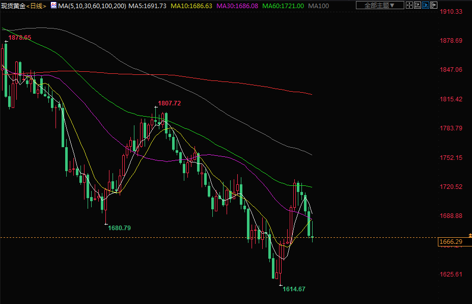 现货金上涨0.6%,至每盎司1677.70美元,盘中稍早一度上涨约1%。指标美国10年期国债收益率回吐了稍早涨幅,有助于提振对不孳息黄金的需求。