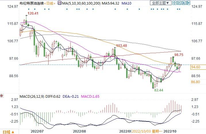 北京时间10月14日13:37,布伦特原油连续报94.60美元/桶