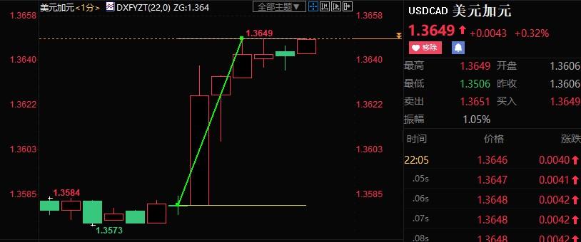 北京时间周三(10月26日)22点,加拿大央行公布新政,加息50个基点,幅度不如先前市场预期。截至发稿,美元兑加元跳涨近70点至1.3650。