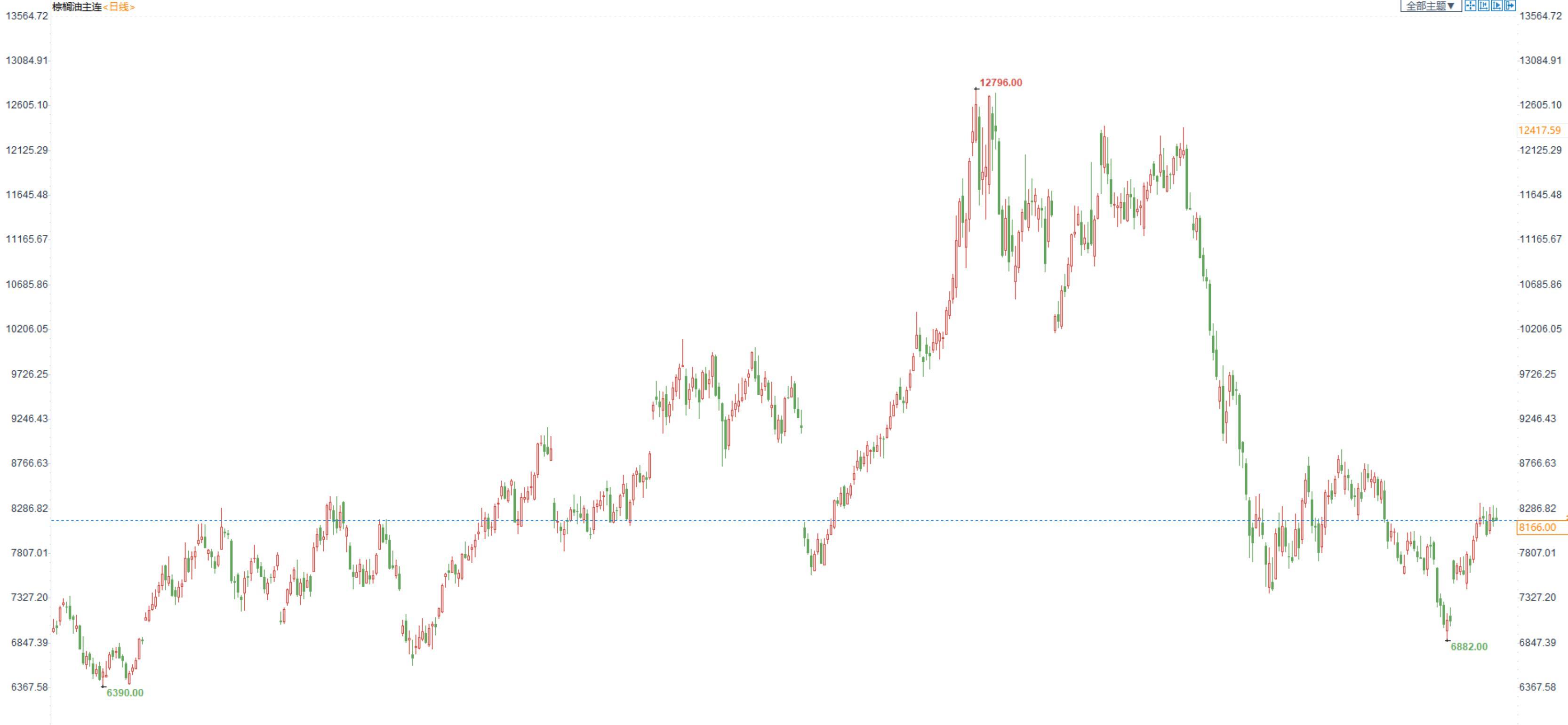 棕榈油2301合约日内涨跌与昨日持平,收盘8166元/吨;广州市场棕榈油8430元/吨。