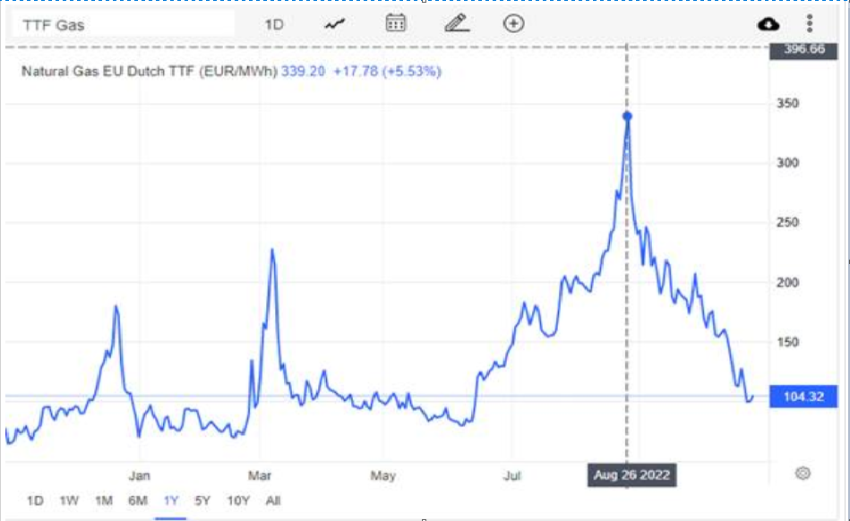 欧洲天然气价格连日来大幅回落引发市场关注,其中素有“欧洲天然气价格风向标”的荷兰TTF即月期货24日跌破100欧元/兆瓦时关口,较最高点回落逾70%,欧洲部分天然气现货价格更是一度跌成负数,至-15.78欧元/兆瓦时,创下有史以来的最低价格。而此前,由于俄罗斯对欧洲的油气出口骤减,欧洲天然气经历了一段凌厉的上涨行情,荷兰TTF即月期货曾在8月26日暴涨至339.2欧元/兆瓦时,刷新历史最高纪录。因此,有业内专业人士表示,本次欧洲天然气价格下跌,说明俄乌冲突对天然气市场带来的主要冲击波已经过去。