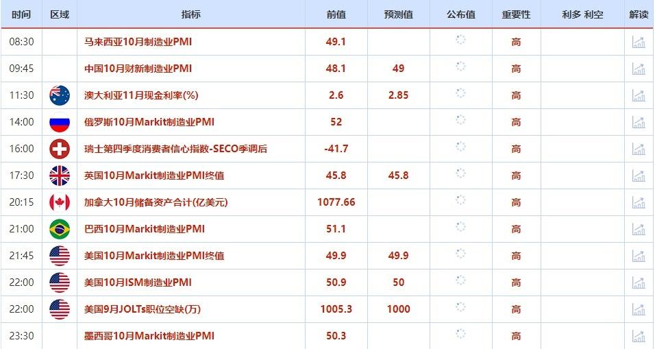 ①布朗兄弟哈里曼银行经济学家预计,欧元兑美元在跌破0.9855后,可能会测试10月21日低位的0.9705区域。尽管欧元区通胀初值数据高于预期,但欧元依然坚挺;