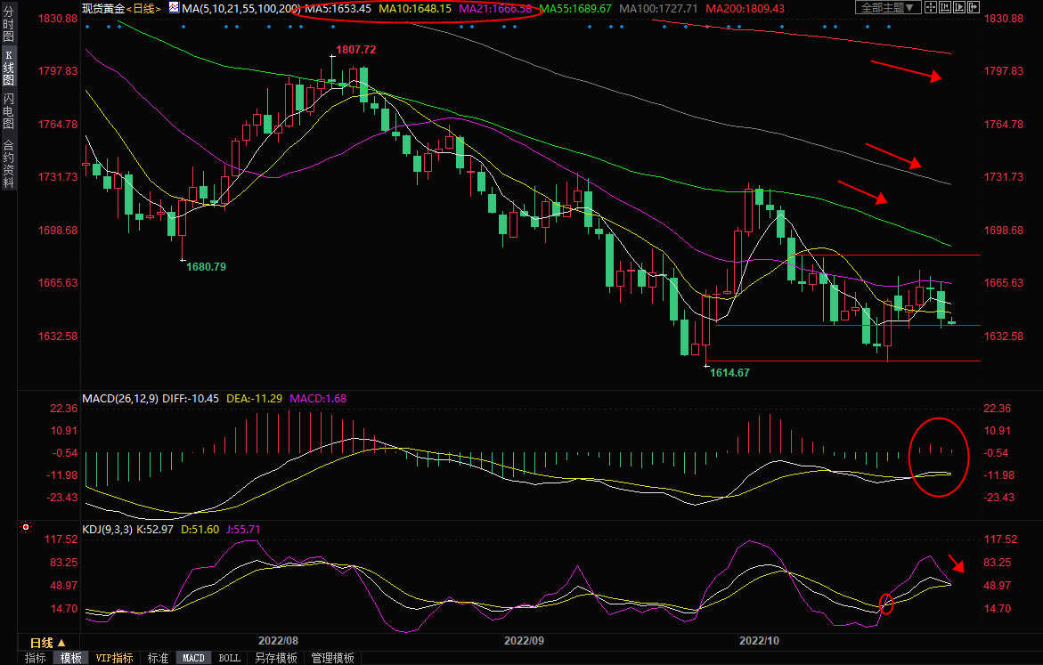 日线级别:震荡;上周油价在90关口附近受阻,并连续两个交易日录得类似十字星K线,MACD金叉信号减弱,KDJ轻微拐头,短线下行风险有所增加,初步支撑在55日均线86.80附近,10日均线支撑在86.15附近,若失守该支撑,则增加短线看空信号;进一步支撑在10月26日低点84.14附近,然后是10月24日低点82.64附近支撑。