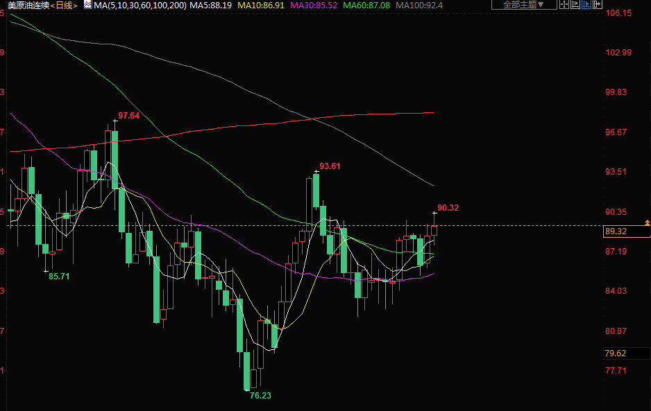 商品收盘情况:布伦特原油结算价上涨1.6%,至96.16美元;美国原油结算价上涨1.8%,至90美元。美国期金结算价上涨0.02%,报每盎司1650美元。
