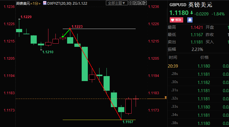 北京时间周四(11月3日)20:30,英国央行行长贝利召开新闻发布会,称可能不得不进一步加息,但升幅将低于市场定价。截至发稿,英镑兑美元下挫逾50点至1.1167。