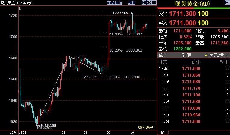 周四(11月10日),国际金价在美指下跌的支撑下重新走高,但在美国通胀数据即将公布前,投资者持谨慎心态,金价波动区间不大。金价后市仍上看1729美元。