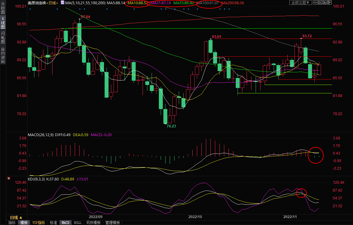 如果油价未能站稳在10日均线上方,则需要提防油价重回跌势的风险,目前短线的话,21日均线已经转化为初步支撑所在,55日均线支撑在86.40附近,若失守该支撑,则增加短线看空信号;进一步支撑参考隔夜低点84.70位置,布林线下轨支撑在82.69附近。