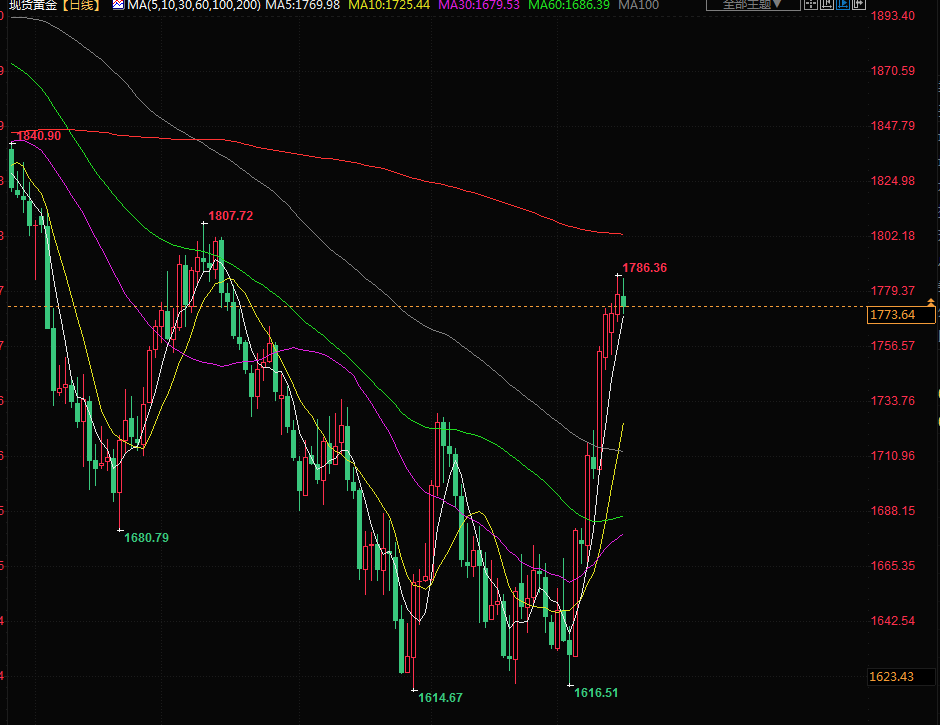 Ghali补充说:“在短期内,我们有可能继续看到这种因空头回补而导致的走高,但超过1850美元的关口后,这种情况可能会消退,我们预计金价此后会走弱。”