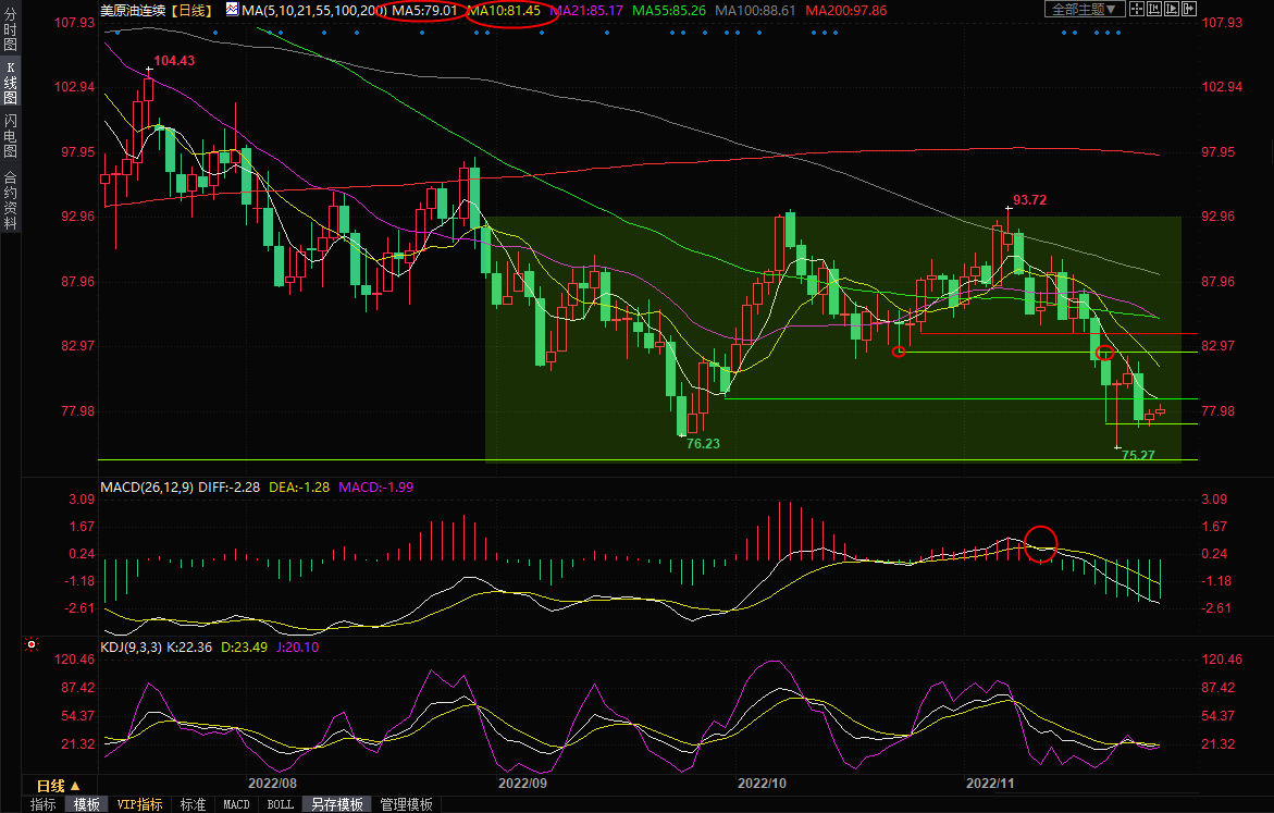 在跌破本周低点75.27前,仍需提防油价震荡筑底的可能性,初步阻力在5日均线79.00附近,然后是80整数关口,10日均线阻力在81.45附近,周一高点和10月24日低点阻力在82.64附近,若意外顶破该阻力,则增加后市见底的可能性。